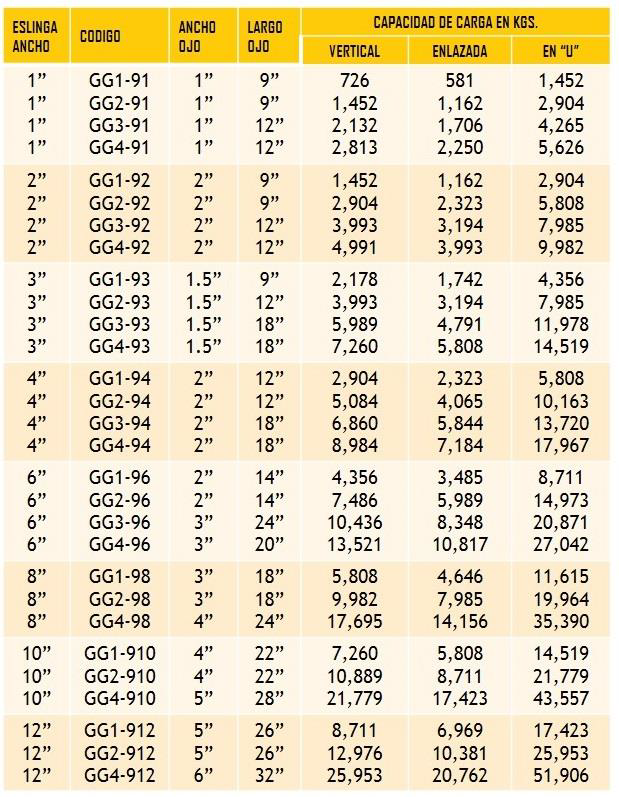 Estas eslingas pueden ser utilizadas en cualquier tipo de arreglo ya que por sus múltiples aplicaciones pueden ser usadas en cualquier tipo de carga. Ya sea en gasa plano tipo III o con gasa torcida tipo IV.
