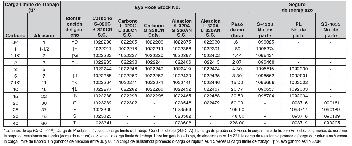 Todos los ganchos de ojo para izaje Crosby 320 han incorporado las siguientes características: